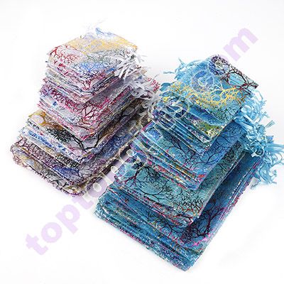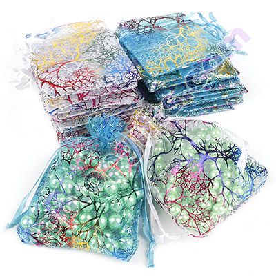 100pcs white color 10X15cm organza bag colorful coral jewelry bag gift packing