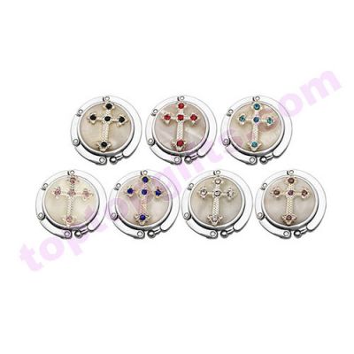 10pcs sapphire blue rhinestone cross bag hanger round shell bag hanger portable purse hook table hanger from Toptopgifts. Sell by lot, 10pcs per lot.