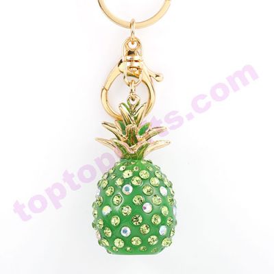 10pcs yellow pineapple rhinestone keychain metal pineapple bag decor fruit rhinestone key ring from Toptopgifts. Sell by lot, 10pcs per lot.