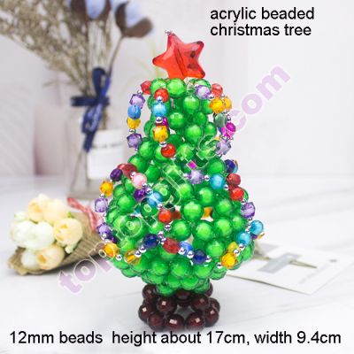 12mm plastic acrylic beaded Christmas tree New Year decoration gift. Height about 17cm, width about 9.4cm, Sell by lot, 10pcs per lot.