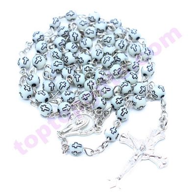 12strings 6mm plastic cross prayer beads cross plastic rosary necklace holy religous jewelry