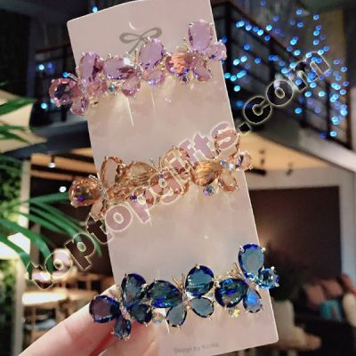 20pcs mixed color 3pcs Chinese crystal stone butterfly french barrette large hair clip fashion hair accessory from Toptopgifts. Sell by lot, 20pcs per lot.