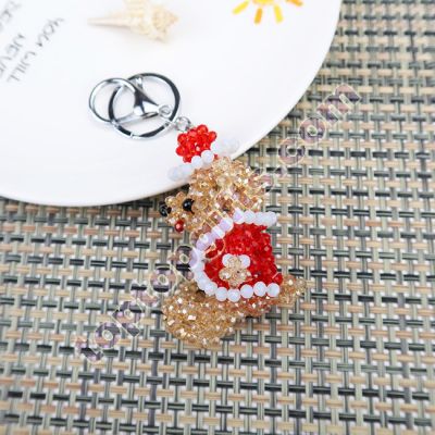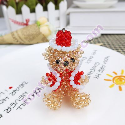 10pcs 4mm Imitation Crystal beaded Christams Boy Bear Keychain Bag Decoration