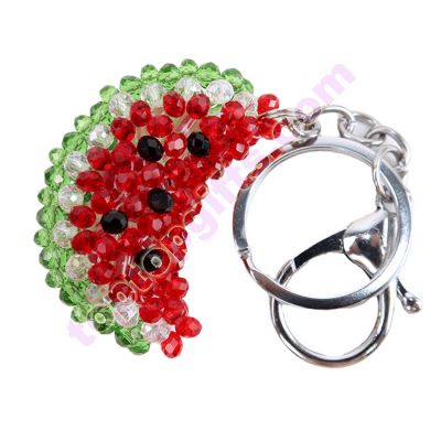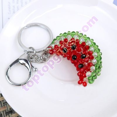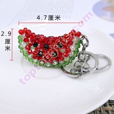 12pcs 4mm imitation crystal beaded watermelon charm keychain bag decoration
