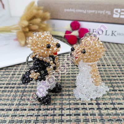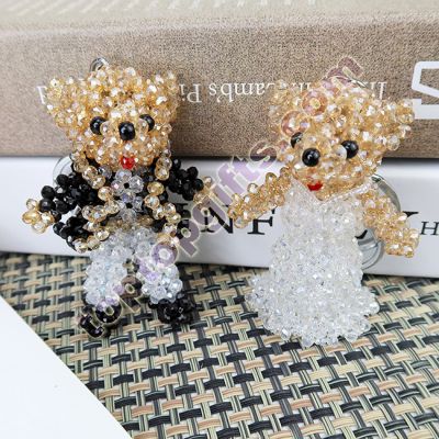 4mm imitation crystal beaded wedding boy bear keychain bag decoration. Size: height about 8cm, width about 5.4cm. Sell by lot, 10ps per lot.