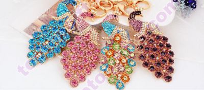6pcs black rhinestone peacock keychain metal peacock animal bag charm car decorative pendant from Toptopgifts. Sell by lot, 6pcs per lot.