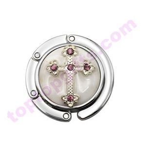 10pcs purple rhinestone cross bag hanger round shell bag hanger portable purse hook table hanger