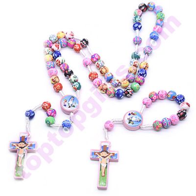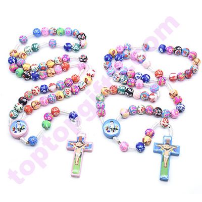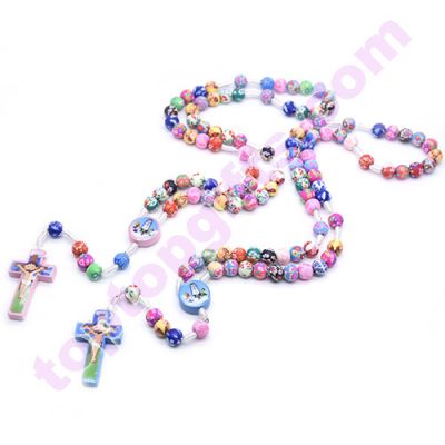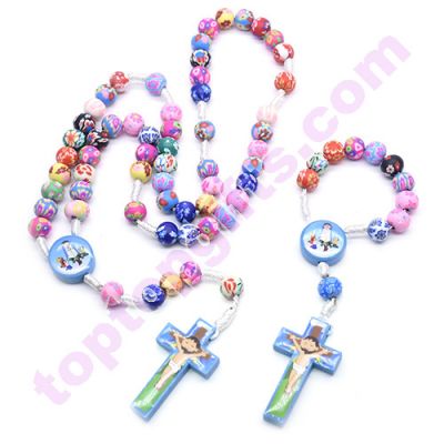 blue color 8mm fimo rosary beads handmade children pray rosary necklance fashion religious jewelry from Toptopgifts. Nice gifts wholesale from China. Sell by lot, 12pcs per lot.