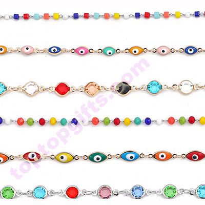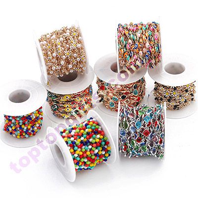 gold chain colorful 5x13mm eye bead chain over glass eye beads chain diy bracelet supplies jewelry accessories from Toptopgifts. Sell by lot, about 500cm long per lot.
