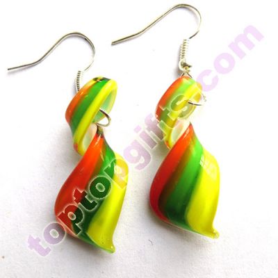 green colorful ribbon shape eardrop handmade lampwork glass streamer style earring fashion jewelry from Toptopgifts. Sell by lot, 12pairs per lot.