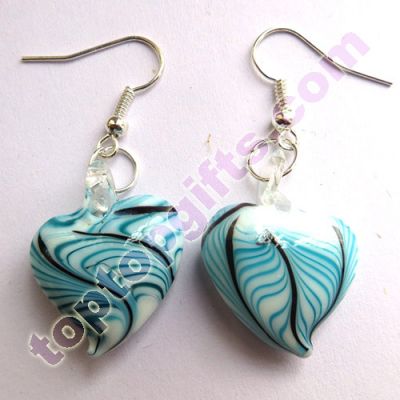 light blue heart feather design lampwork glass eardrops handmade fashion earrring from Toptopgifts. Sell by lot, 12 pairs per lot.