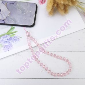12pcs 8mm pink color imitation crystal beaded phone strap