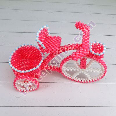 red plastic beaded bicycle deco Children bike pen holder. Size about 17*23cm. Sell by lot, 6pcs per lot.