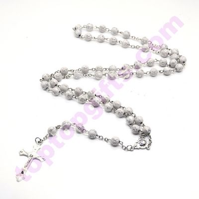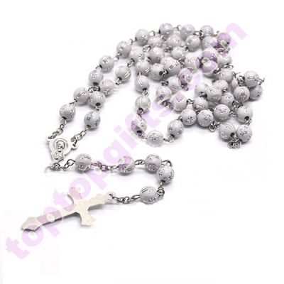 silver color 8mm cross plastic beads necklace 59pcs silver cross rosary necklace fashion relious jewelry from Toptopgifts. Sell by lot, 12pcs per lot.