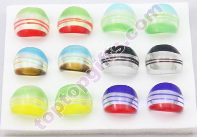 12pcs stripe lampwork glass ring hanmade fashion glass ring 18mm inside diameter nice jewelry gift
