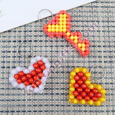 yellow with red 8mm acrylic beaded heart keychain handmade beaded bag decoration. Width about 6cm, height about 5cm. Sell by lot, 10pcs per lot.